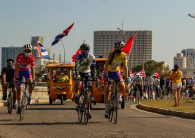 We maken een fietstocht door de stad. Onder begeleiding van de jongens van de lokale fietsclub rijden we over de Malecon, door de wijken Centro Havana en Vedado. We bezoeken de Tribuna Anti-Imperialista, de Plaza de la Revolucion en een lokale markt waar de Cubanen hun voedsel kopen. We gaan ook naar een voedselverdeelwinkel waar men met rantsoeneringsboekjes maandelijks een aantal voedselproducten kan ophalen. We onderbreken deze dag met een verdiende lunch in het sfeervolle restaurant Bodeguita del Medio, typisch Cubaans met een Cubaanse keuken en live muziek, en uiteraard een mojito.