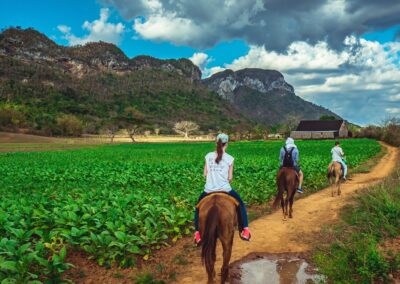 Vandaag verlaten we de stad naar de regio van Vuelta Abajo waar de beste tabak ter wereld groeit. In januari staan de velden vol met tabak en werken de boeren volop om de planten te verzorgen. In een sigarenfabriek in Pinar del Rio zien we het proces waar de sigaren volledig met de hand worden gerold en verpakt. We rijden door naar Vuelta Abajo en bezoeken een werkplaats waar men andere werkzaamheden uitvoert in het productieproces zoals het ont-nerven en fermenteren van de bladeren. Vervolgens naar de tabaksplantage van de beste tabaksboer van Cuba, Hector Luis Prieto (Finca Quemada de Rubí) voor een begeleide wandeling over de landerijen van de boerderij welke in volle productie is in januari. Een lokale gids legt uit over werk op de velden en in de drooghuizen. Hier genieten we van een typisch Cubaanse boerenlunch in het restaurant van de boerderij met ook een koffie, een shot rum en een sigaar van de boerderij.