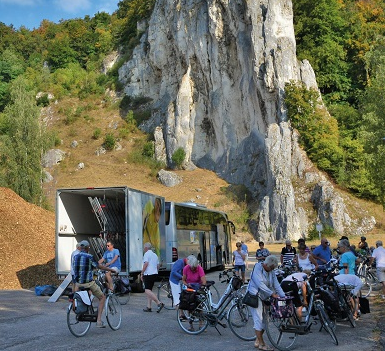 Met de comfortabele fietsbus in rustig tempo naar Zuid-Duitsland waar u voor het diner aankomt.