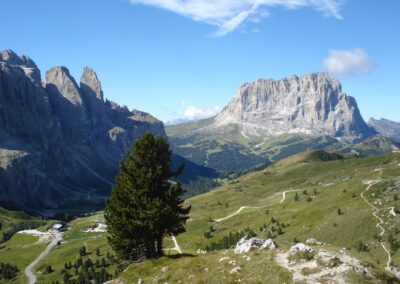 We zijn niet alleen in Zuid-Tirol, we zijn ook daar waar zich de Dolomieten bevinden. We maken vanmiddag dan ook een mooie passentocht door de Dolomieten met onder andere de Passo Gardena en de Passo Pordoi met uitzichten op de Sella groep en de Marmolada, de hoogste berg van de Dolomieten.