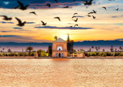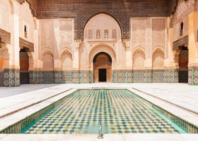 We snuiven de Marokkaanse cultuur op en brengen een uitgebreid bezoek aan het centrum van Marrakech. We zien onder meer Palais Bahia, Medarba en de kruidenmarkt. Natuurlijk nemen we tijd voor het Djemaa el Fna plein. Het grote plein ligt midden in de oude medina van Marrakech. Het is er altijd levendig met kraampjes, entertainers, eetgelegenheden en muziek. Van hier uit wandelen we door de souk, een doolhof van gezellige straatjes met allerlei Marokkaanse producten. Dan gaan we naar het watermuseum, zeker een bezoek waard. Het bijzondere gebouw is innovatief en eigentijds met een nadruk op Marokkaans, Arabisch en Islamitische erfgoed op het gebied van water in alle facetten. Behalve het gebouw ligt er rondom een park waar meerdere grootschalige projecten getoond worden.