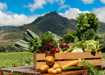 We maken een wandeling van ongeveer 1,5 kilometer door de prachtige natuur, met een stop bij de La Tatica waterval. Onderweg zien we velden waar bijvoorbeeld wortelen, uien en aardappelen worden verbouwd. Aangekomen bij de boerderij bij Baja Mono vertelt de lokale boer ook over de diverse dieren op de boerderij zoals varkens, geiten en koeien.